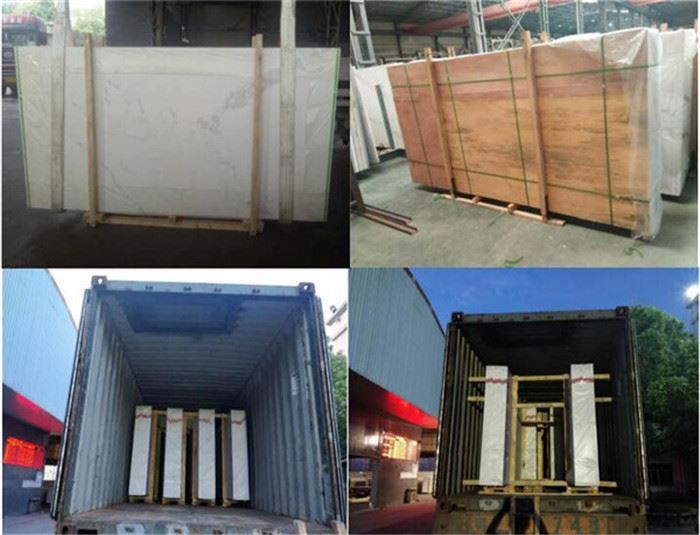 Standardverpackung mit A-Stahlrahmen, geeignet für den Seetransport. Ein voller Container (20'DC) kann 100 Platten mit 2 cm Dicke aufnehmen. Gemischte Produktladungen sind zulässig.