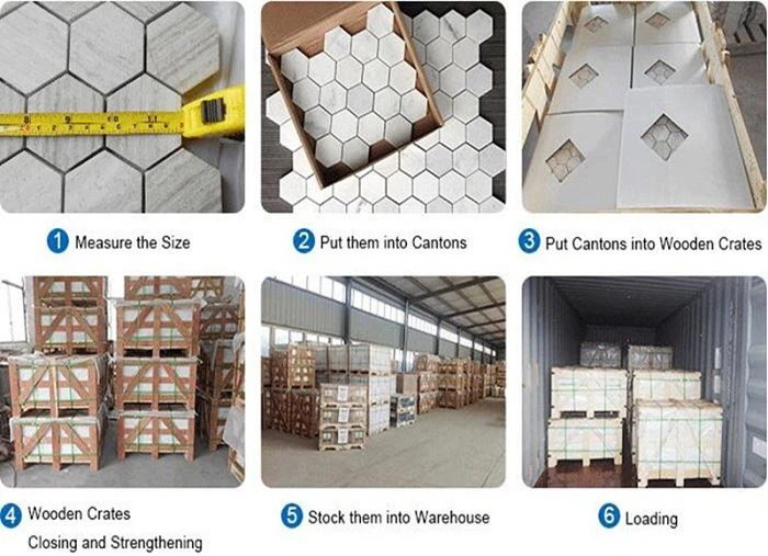 Mosaikmuster | Quadrat, Fischgrätmuster, U-Bahn, Sechseck, Achteck, gemischt, großer Fächer, Penny-Rundmuster, handgeschnitten, zufälliger Streifen, Flusssteine, 3D-gewölbt usw. |